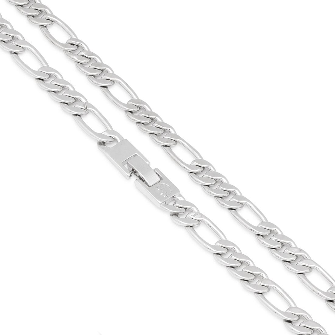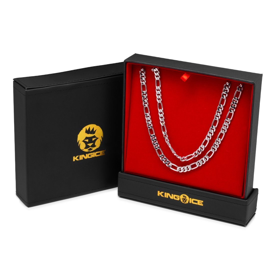 Among the many chains that became popular in hip hop, the Figaro chain is up there. King Ice's new 8mm White Gold Figaro Choker Set comes with two chokers, one 18" and the other 20" for the perfect length match. Its multi link style is plated with white gold for that class look.