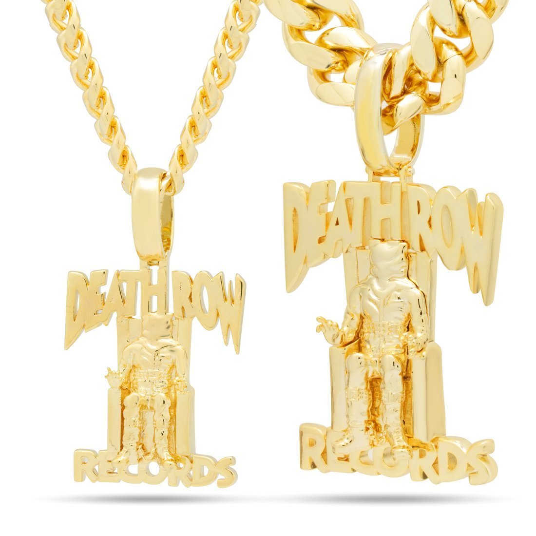 Using 14K Gold plating and white gold plating, the Death Row necklace perfectly resembles the iconic brand label. Each new XL size is paired with a 16mm, 20" Miami Cuban chain for a classic fit.