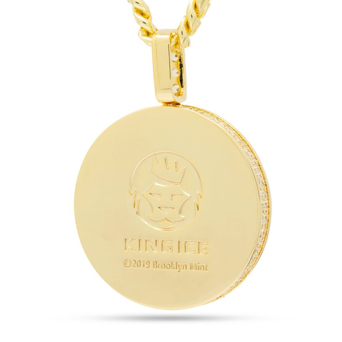 King Ice pays tribute to this classic album with an iced pendant. The portrait and bail are bordered with large CZ stones, while small CZ stones engulf the sides of the border. The back of the pendant has the official King Ice and Brooklyn Mint logo engraved. Available in 14K Gold or white gold plating, the pendant is paired with an 8mm, 20" stainless steel Miami Cuban chain.
