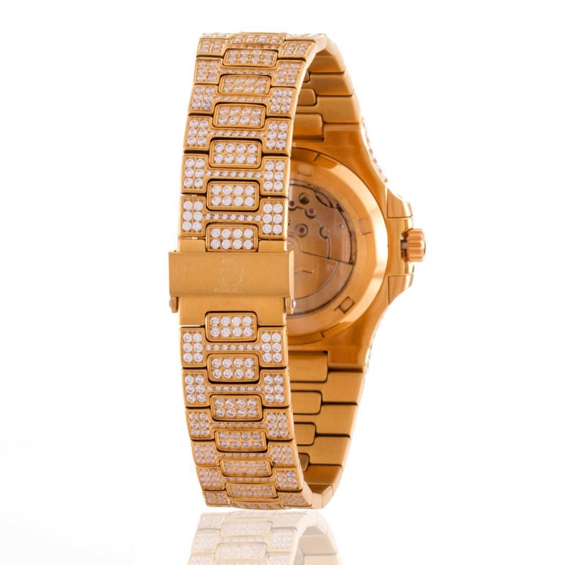 The Quad Watch from King Ice provides an elegant rendition and appreciation to this famous luxury watch. Each face and band features over 1,000 handset VVS Diamond Simulate stones to complete its look.