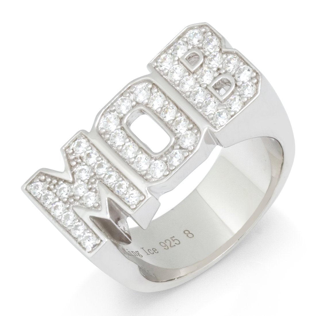 The M.O.B. (Money Over B*tches) is for those on that grind and has no time for distractions. Made from solid .925 sterling silver and available in 14K gold and white gold plating, the MOB ring is a popular choice for hip hop jewelry for its vibrant look and unsubtle meaning.