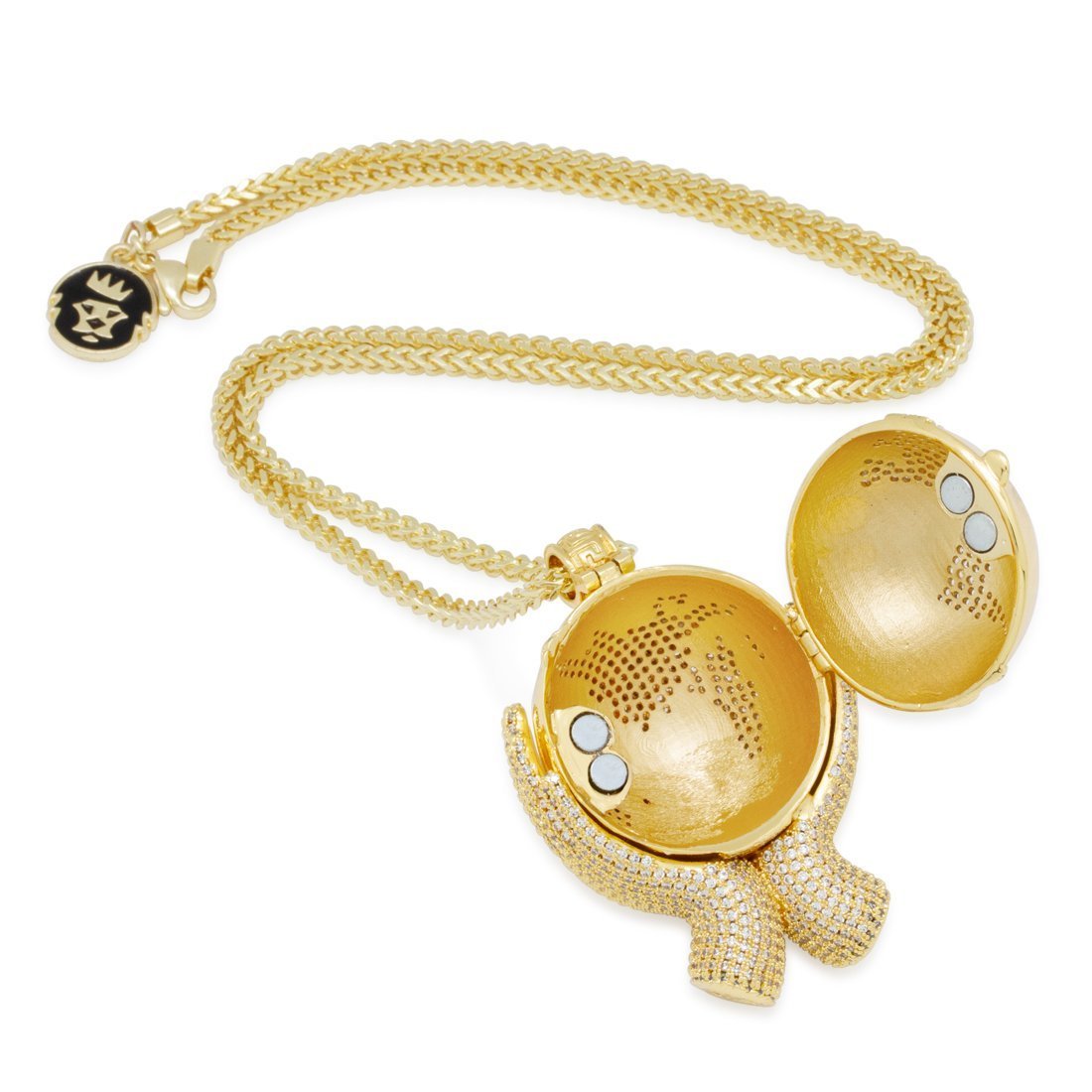 You've got the world in your hands with this 14K Gold Jungl Julz edition. Plated in 14K gold, each pendant features a hidden compartment to store your valuables, while the front-facing continents display clear, round-cut CZ stones, and with a matching 24", 2.5mm franco chain included, you get a one-of-kind pendant from Snoop Dogg's official jewelry line.