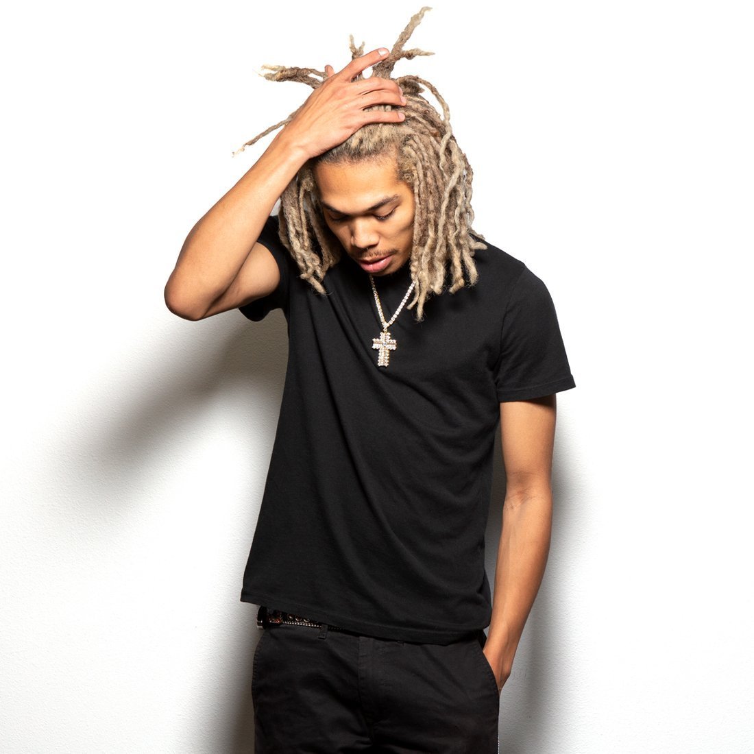 The new Icy Cross Necklace is exactly that, icy. Each necklace is decked out with clear VVS Diamond Simulates in round and emerald shapes. All necklaces are plated with a 14K Gold finish for a flossy finish. A 5mm, 20" Tennis Chain accompanies each cross.